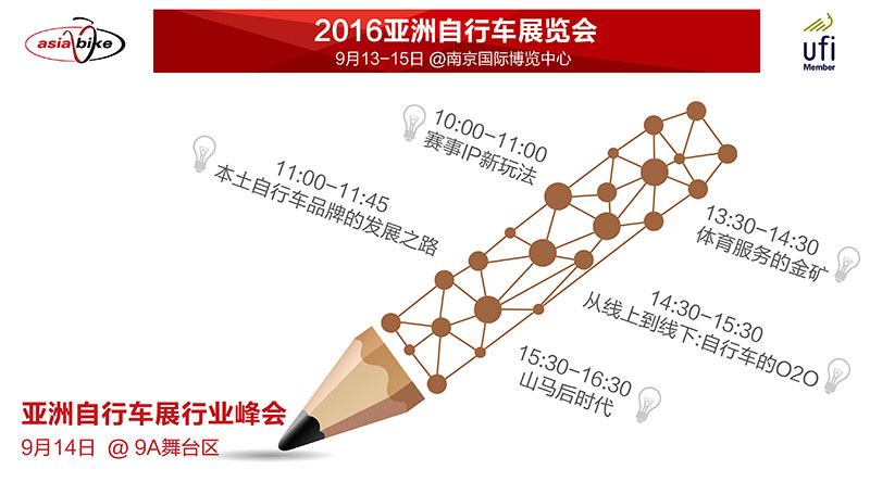 第二屆亞洲自行車展行業(yè)峰會將緊跟熱點,引入賽事IP、電商O2O、體育服務(wù)、產(chǎn)品趨勢等話題,邀請業(yè)內(nèi)外專家進(jìn)行經(jīng)驗分享,在討論互動中啟發(fā)靈感。
