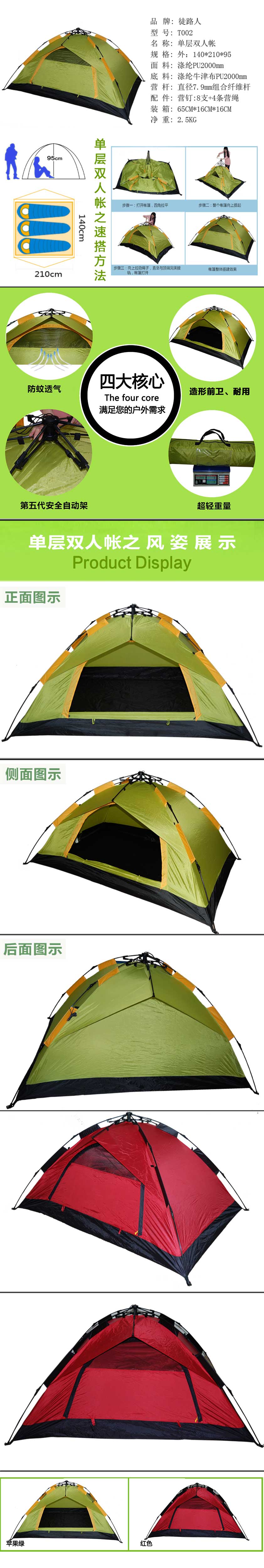 1.帳身采用壓膠處理,完全做到防水防雨;