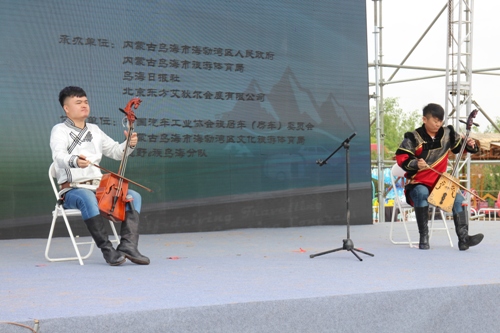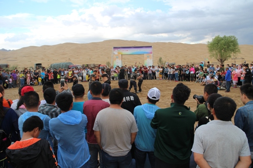 開幕式后,主舞臺安排了歌舞、馬頭琴演奏等表演節(jié)目,供游人觀賞。而在靠近沙丘的一邊,沙地賽車開始進入檢錄、準備階段,各式各樣的賽車陸陸續(xù)續(xù)駛入現場,賽手們信心滿滿,進行著各種準備。
