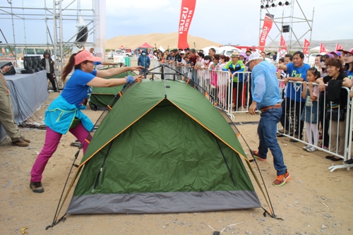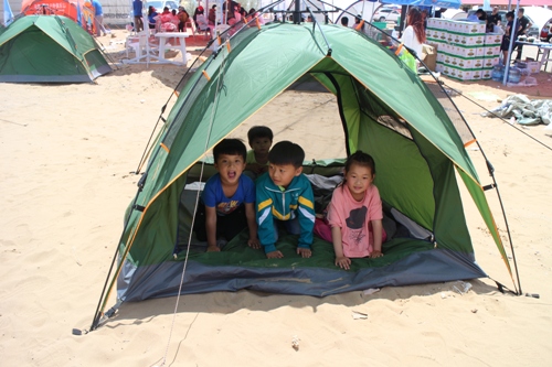 第一天中午時分,最熱鬧的地方當屬露營區(qū)。營區(qū)內已經搭好200多頂“嘀嘟客”露營帳篷,有的車友一家人在帳篷內就餐;有的伙伴們在帳篷內聊天打牌;最高興的還是那些孩子們,帳篷為他們開辟出一塊專屬的天地,讓他們得以盡情玩耍。