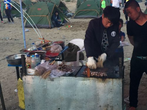 一邊吃著烏海當地美味的燒烤,一邊暢飲交談,車友們盡情享用露營生活。