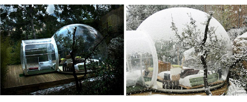 法國設(shè)計(jì)師 Pierre-Stéphane Dumas 設(shè)計(jì)了一款透明氣泡帳篷,因?yàn)樗鼘?shí)現(xiàn)了能量的自給自足,這款帳篷可以放在花園、郊外、山間……任何你喜歡的地方。想想兩個(gè)人在里面「起看雪看星星看月亮,從詩詞歌賦談到人生哲學(xué)」是多么浪漫的一件事情,這才是真正的「以天為被,地為床」吧。