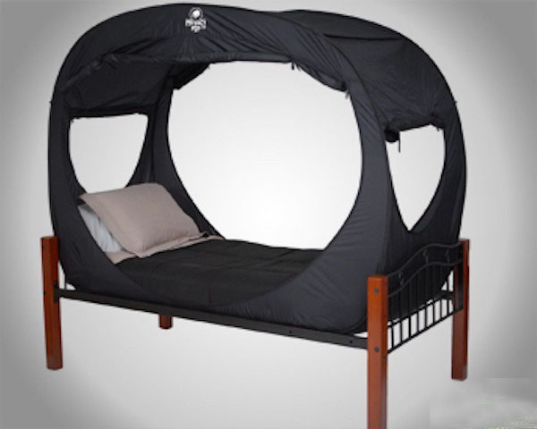 如果你苦于沒有一個(gè)屬于自己的私人空間,「privacy pop」帳篷無疑會(huì)滿足你的要求,讓你即使是在合用的臥室中也能享受到奢侈的私人空間。其兩側(cè)的拉鏈窗為使用者提供必要的光線和空氣流通。這個(gè)可拆卸的帳篷可以容納兩張雙人床或兩張雙人大床,同時(shí)它還可以折疊起來便于運(yùn)輸和攜帶,此設(shè)計(jì)有點(diǎn)類似我們夏天用的“蚊帳”,只是使用材料不同而已,私密性更好。另外方便攜帶。